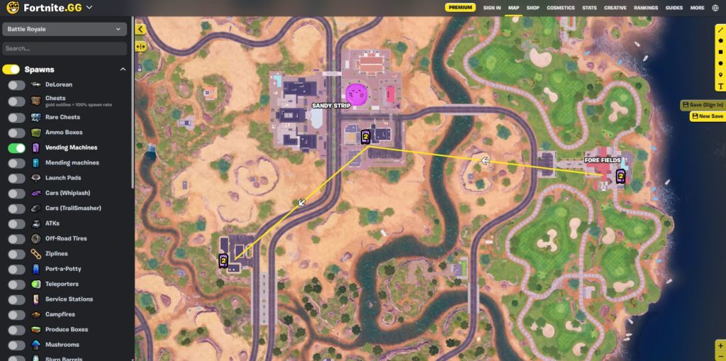 まず自販機があるのは名前付きランドマーク。その中で、収集効率のいいレジがある場所を探す。